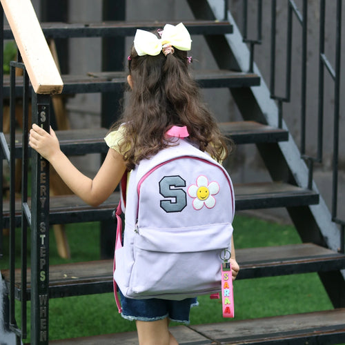 This backpack brings a fun dose of personality with its bold initial patch and vibrant name-tag keychain. The personalized elements make it feel truly special.