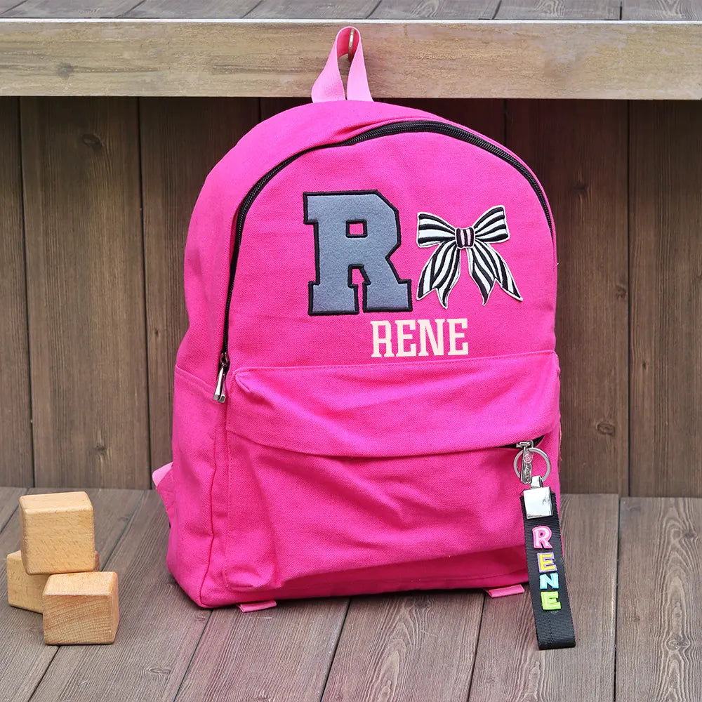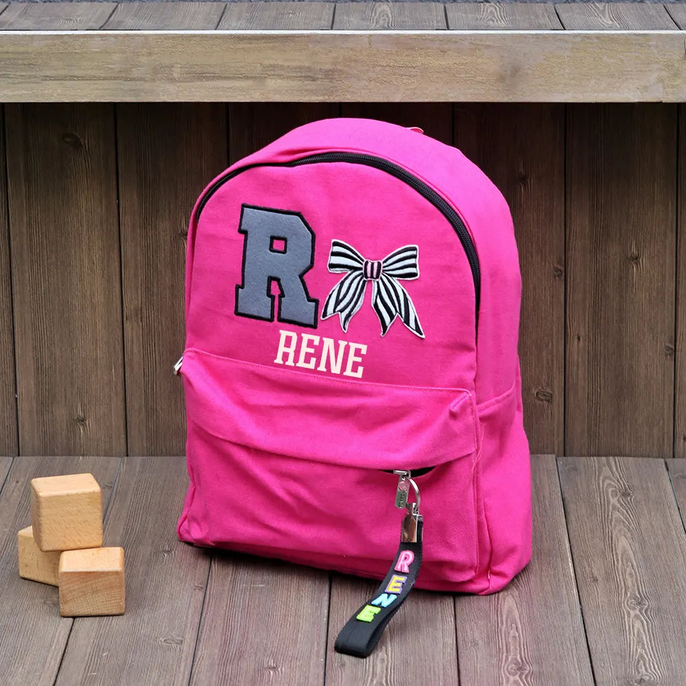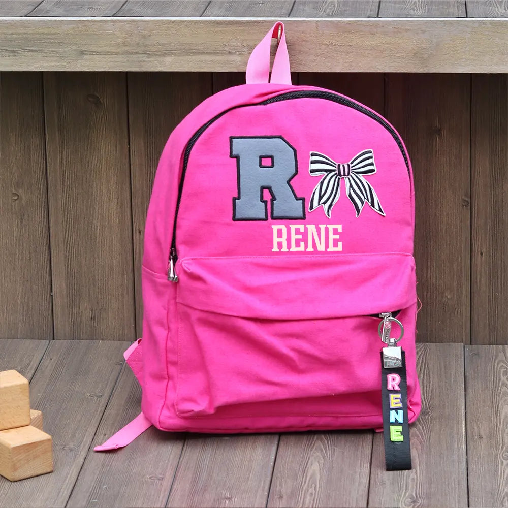 This backpack brings a fun dose of personality with its bold initial patch and vibrant name-tag keychain. The personalized elements make it feel truly special.