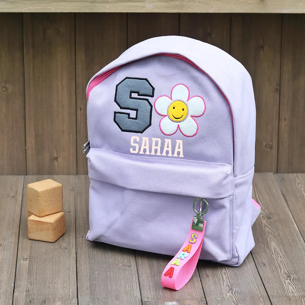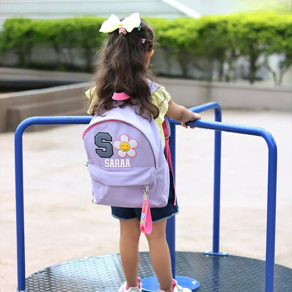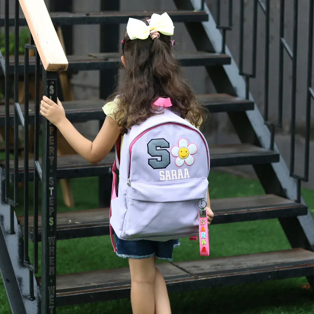 This backpack brings a fun dose of personality with its bold initial patch and vibrant name-tag keychain. The personalized elements make it feel truly special.