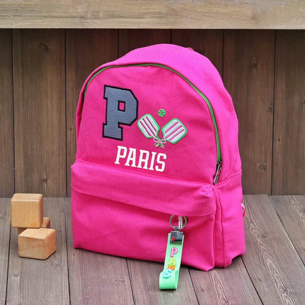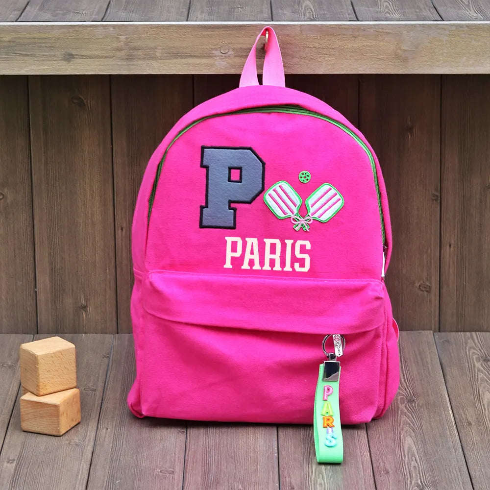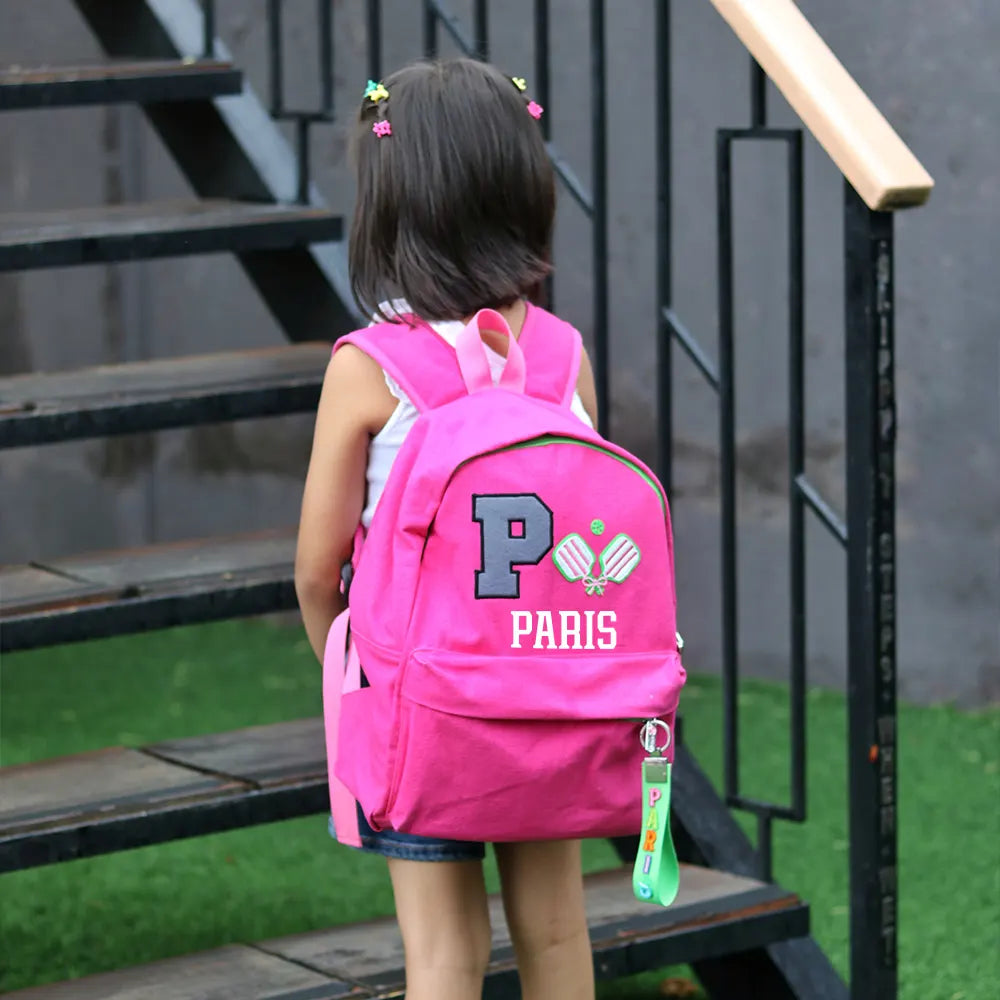 This backpack brings a fun dose of personality with its bold initial patch and vibrant name-tag keychain. The personalized elements make it feel truly special.