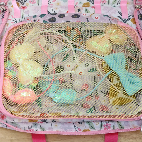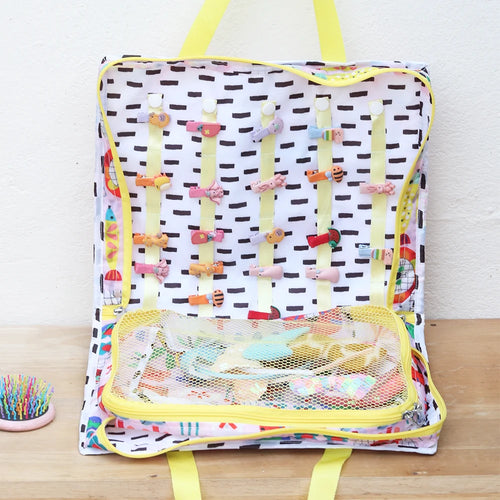The bag includes a dedicated section for holding headbands, making it a versatile storage solution for all hair accessories.