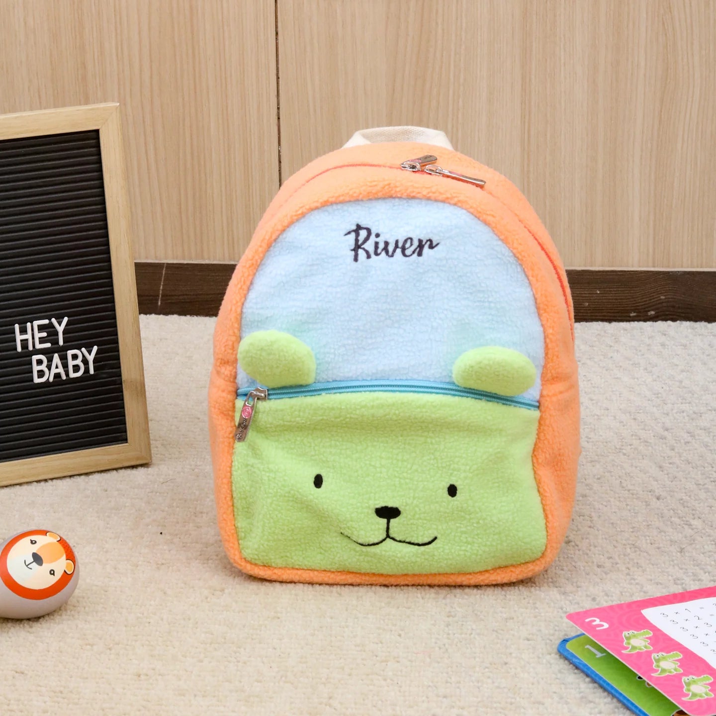 Beautifully curated hamper including a cuddly soft toy, a plush baby backpack, and a personalized napkin set — perfect for gifting little ones.