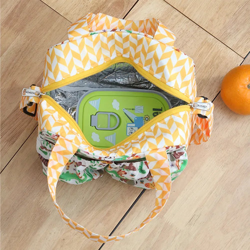 The bag’s interior is lined with an insulated layer to maintain the temperature of your food, ensuring meals stay warm until it's time to eat.