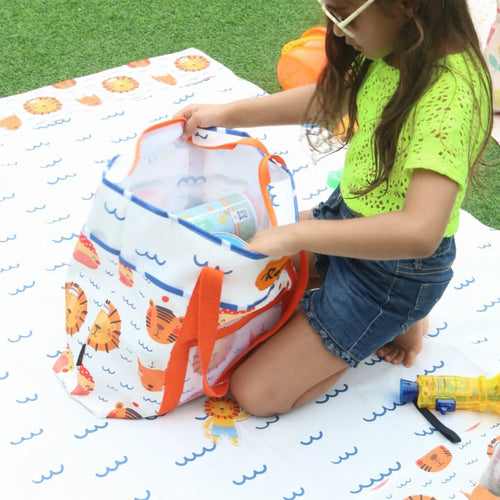 Comes with a roomy mat designed for kids to sit, snack, and play comfortably. Its waterproof and easy-to-clean surface makes it perfect for grass, sand, or indoor use.