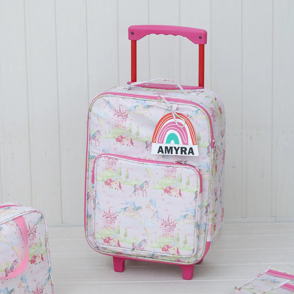 The trolley suitcase features smooth-rolling wheels and an easy pull-out handle, allowing kids to move comfortably on their own. Multiple compartments with secure zip closures provide ample space for clothes, accessories, and daily essentials. Ideal for travel, school trips, sleepovers, and gifting, this coordinated set offers convenience, durability, and style in one complete package.