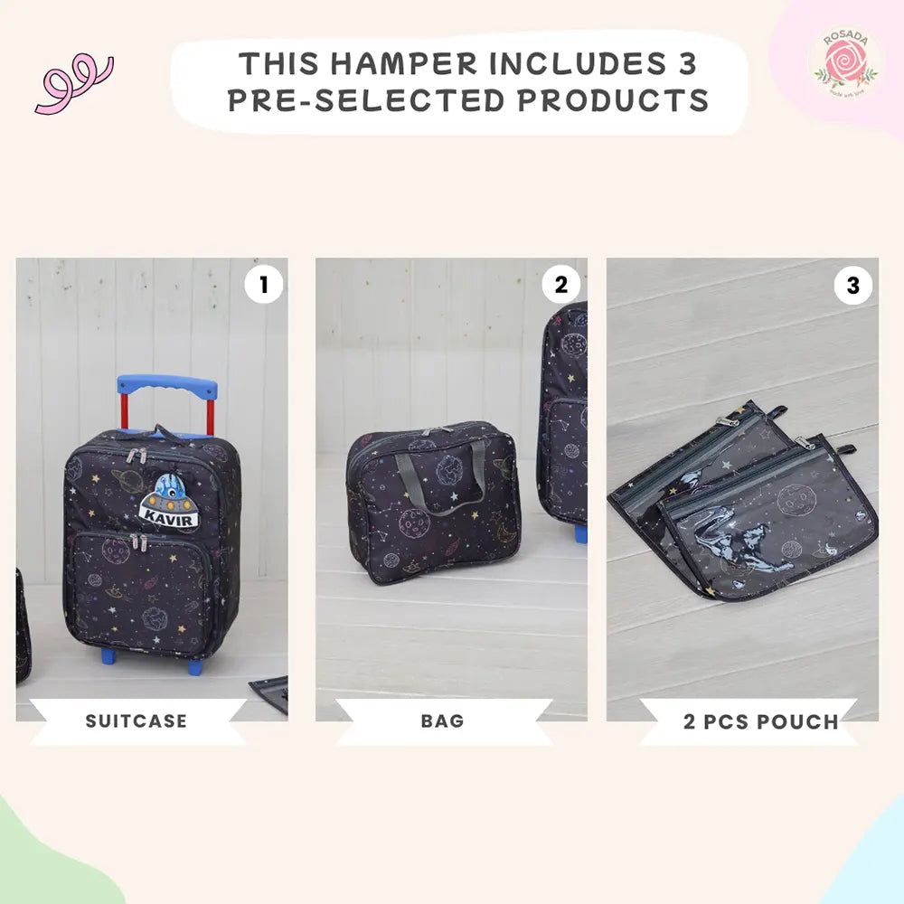 Includes a trolley bag, hand bag, and two zipper pouches for complete travel organization.
