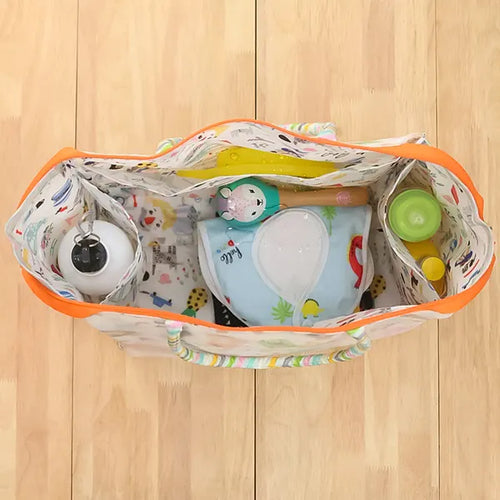 Equipped with one main compartment and three side sections, with ample space for carrying snacks, books, toys, and other essentials, making it ideal for outings.