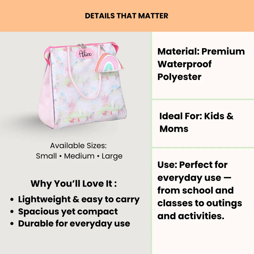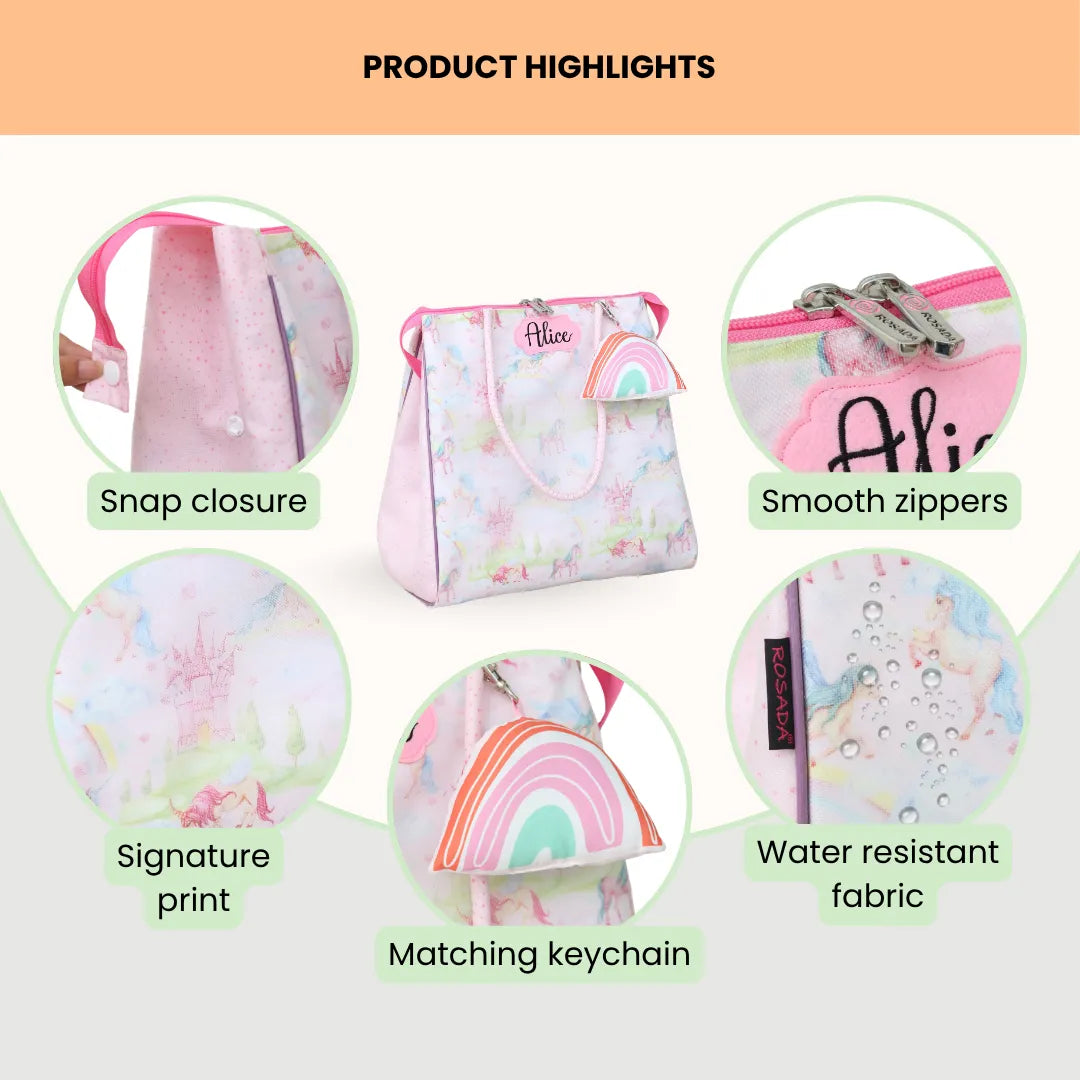 Rosada tote bags are crafted with water resistant material and double lining to ensure that belongings stay dry and protected, from water splashes or Sun heat.
