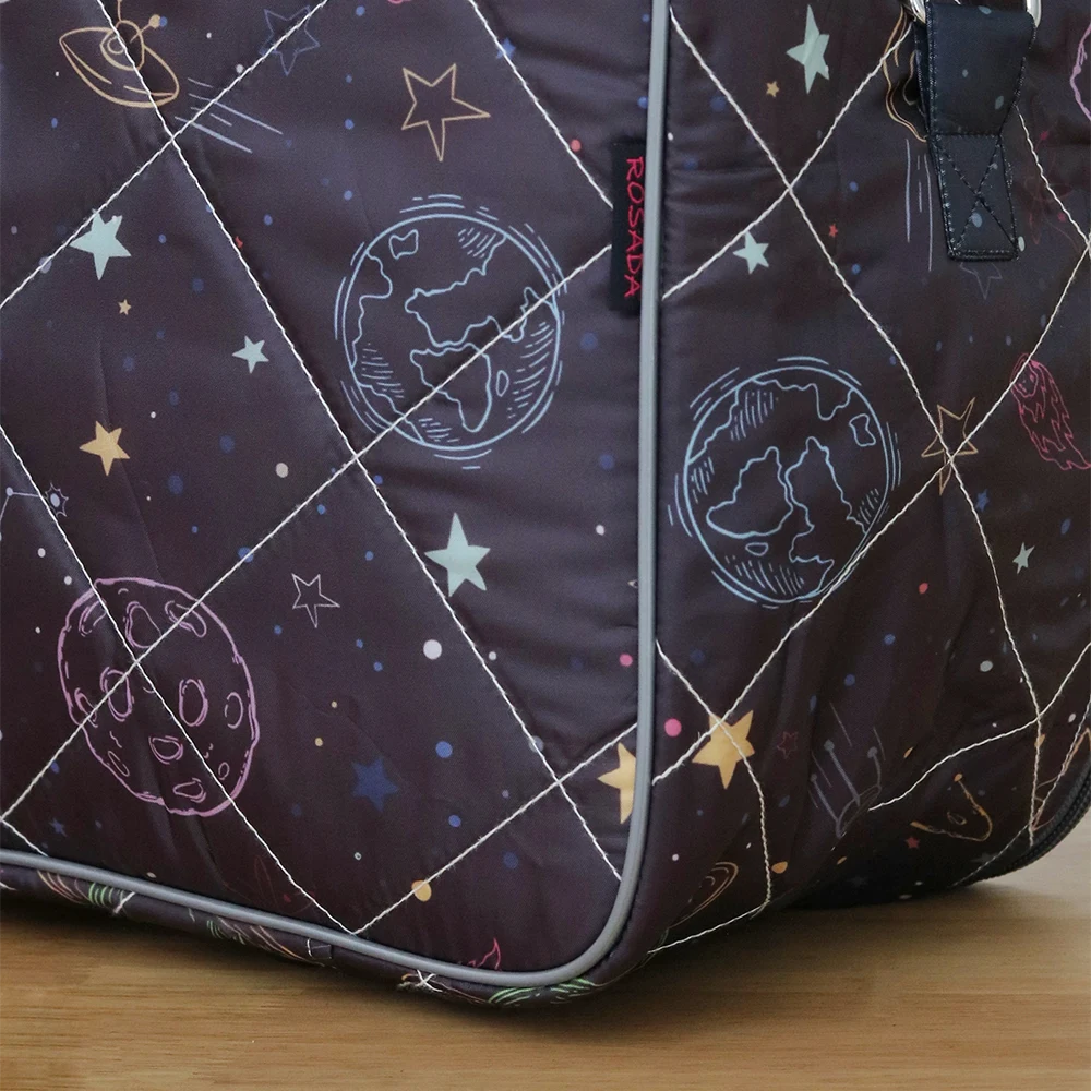 Designed with a roomy main compartment, this travel case can hold everything from clothes to toys, books, and other travel essentials, keeping all items organized and accessible.