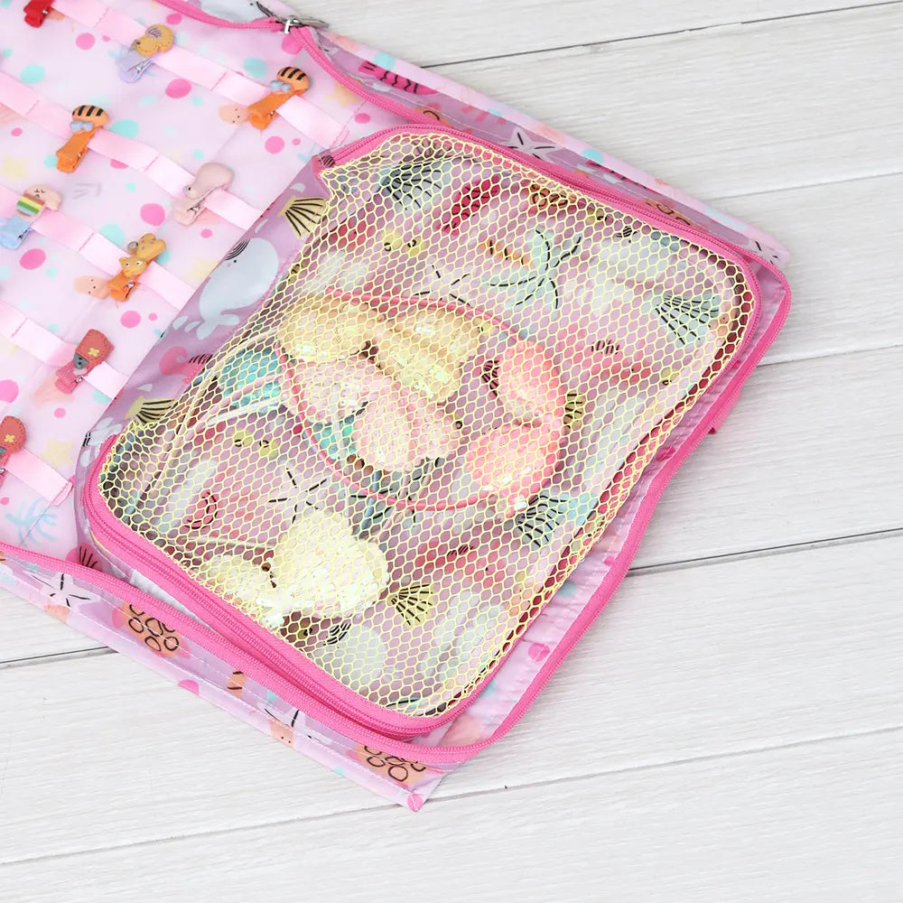 The bag includes a dedicated section for holding headbands, making it a versatile storage solution for all hair accessories.