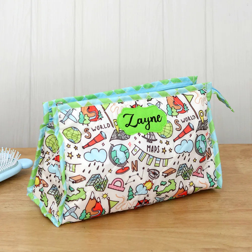 Introducing the Explorer 3-Zip Toiletries Kit – a stylish and fun organizer for kids' essentials. With three spacious compartments and vibrant designs, it keeps everything neatly sorted while adding a playful touch.