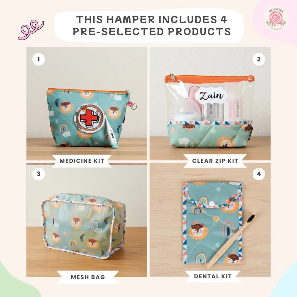 Give your little one a well-organized start with our Safari Essentials Gift Hamper, thoughtfully curated to bring convenience, comfort, and style into everyday routines. Designed with a playful safari print and personalized with your child’s name, this hamper makes a practical and memorable gift.