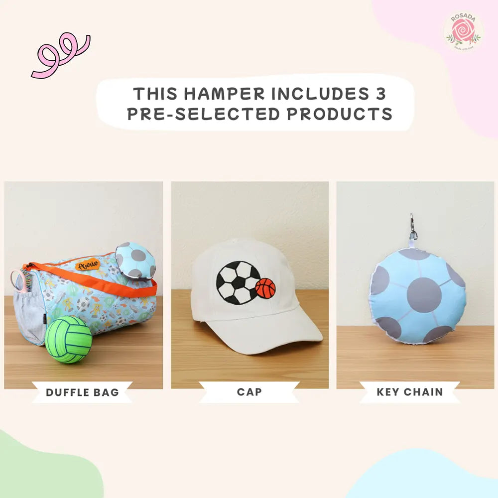 Delight your little one with our Duffle Bag Gift Hamper, a thoughtfully curated set featuring bright colours, functional design, and personalized details. Perfect for school activities, travel, sleepovers, or gifting, this hamper brings together three essential accessories kids will love and use every day.