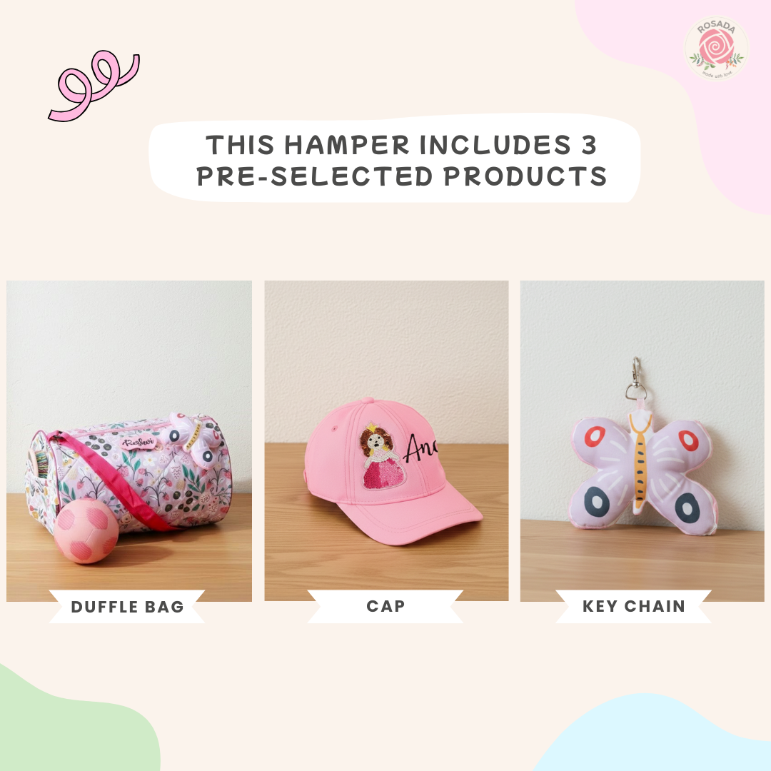 Delight your little one with our Duffle Bag Gift Hamper, a thoughtfully curated set featuring bright colours, functional design, and personalized details. Perfect for school activities, travel, sleepovers, or gifting, this hamper brings together three essential accessories kids will love and use every day.
