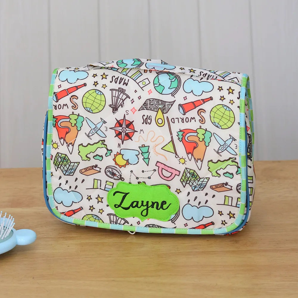 Introducing the Explorer Foldable Travel Kit – a vibrant and stylish organizer for kids' toiletries and essentials.