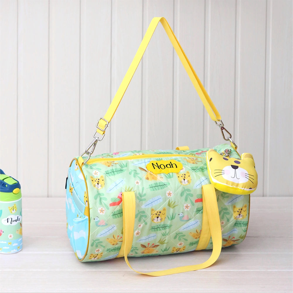 The Duffle Bag is designed for kids who are always on the go! Featuring a spacious main compartment, this fun and stylish bag is perfect for storing clothes, toys, or school essentials. The shoulder strap allows your child to easily carry it over their shoulder, providing both comfort and convenience. The mesh side pocket is a handy addition, perfect for keeping snacks, water bottles, and small toys secure and easily accessible. Lightweight and easy to carry, this bag is ideal for school, sports, or travel.
