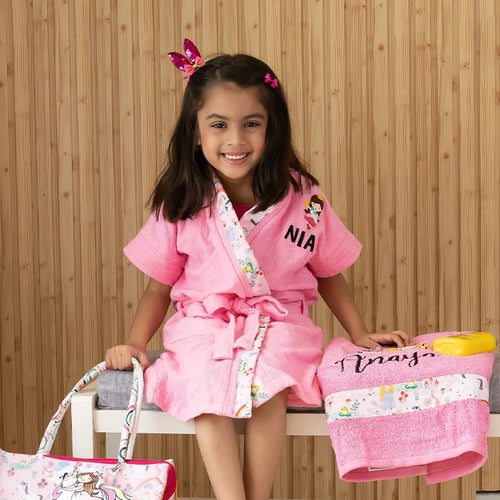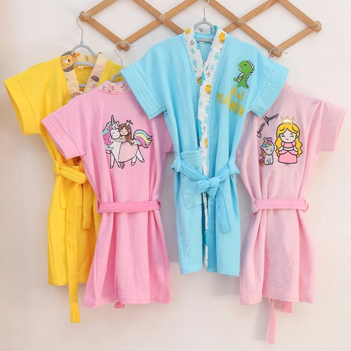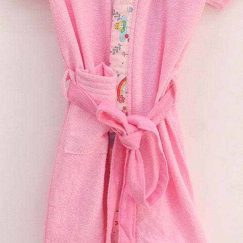 The bathrobe includes a handy pocket, perfect for storing small items or keeping little hands warm.