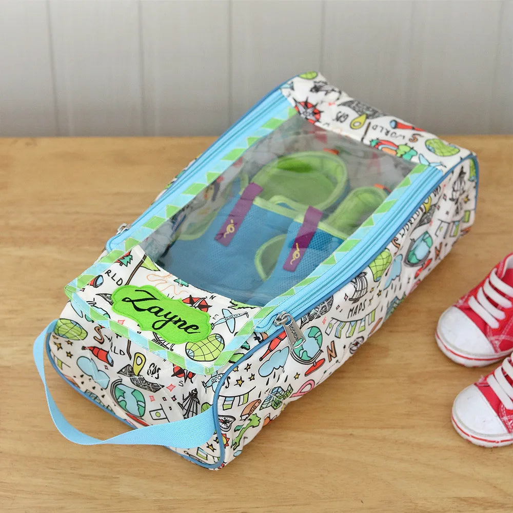 Introducing the Explorer Shoe Bag – a vibrant and stylish organizer for kids' shoes. With its colorful designs and durable compartments, it keeps footwear neatly sorted while adding a playful touch to any space.